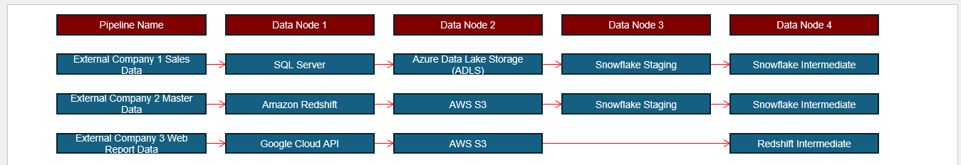' Print each 'node' row with connecting arrows